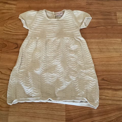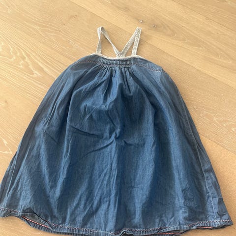 Noa Noa kjole til pige i str. 140. Kjolen er i blå bomuld med lange ærmer og små prikdetaljer i stoffet. Rund halsudskæring og let rynket talje, som giver et enkelt og behageligt snit. Velegnet til hverdagsbrug eller mere pæne lejligheder.