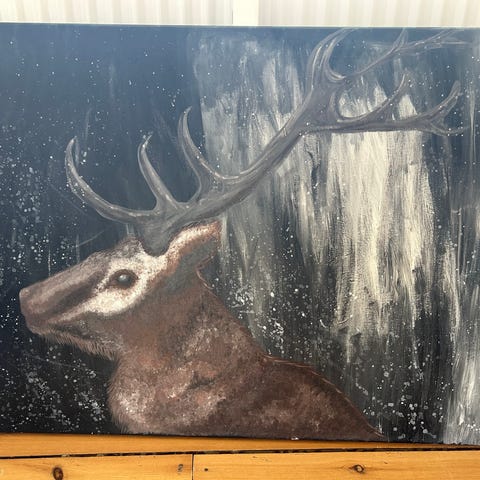 Maleri på lærred af ulv flerfarvet
