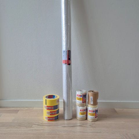 3 Ruller Tesa Easycover plast, 33 meter x 55 cm, nem afdækning til skabe, spejle, fladskærme osv. (butikspris 43,- / stykket, I alt 129,-)