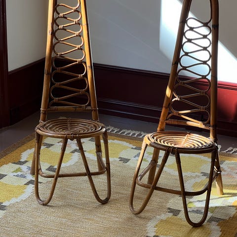 Vintage dark rattan/bamboo chair, Italy, 1960s (2 available)