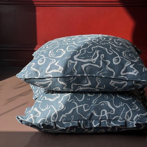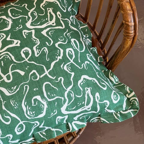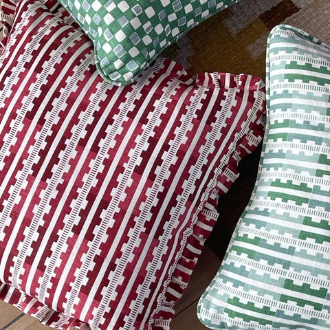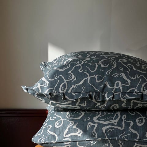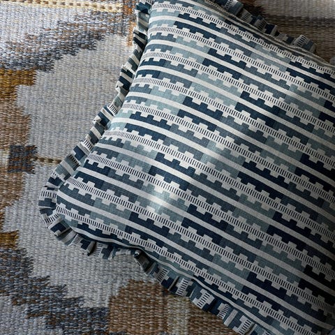 Crafted in colorful and unique prints by Swedish textile designer Cathy Nordström. The cushion covers are carefully handmade by Swedish seamstresses. Designed with a hidden zipper and features piping or ruffled trim detail. *Sold with goose down insert (included in the price). Dimensions: 50x50 cmDetail: Ruffles