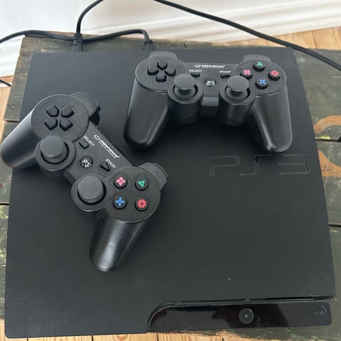 Sony Playstation 3 konsol med tilhørende kabler, to controllere og en samling forskellige spil, herunder blandt andet action-, eventyr- og sportsspil. Konsollen er egnet til brug med fysiske PS3-spildiske og kan anvendes til både enkeltspiller- og flerspillerspil afhængigt af spil og opsætning. Velegnet til generel underholdning, gaming og multimediebrug i hjemmet.