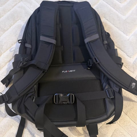 The North Face rygsæk med mange rum både store og små, til bærbar computer, sko, drikke dunk o.s.v. Ingen huller I, alle klik låse og lynlåse virker.