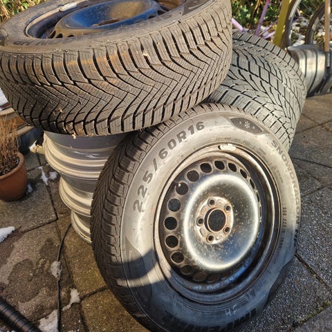 Sælges vinterdæk på fælg. Har siddet på Ford Galaxy. Dækkene er slidte.
