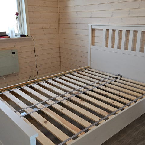 IKEA sengesæt bestående af seng Hemnes, madras + lameller, natbord og lampe i hvid. Sengen har hovedgavl med sprosser og fodgavl. Sengen er 140x200. Natbordet Hemnes har to skuffer med greb på fronten. Madrassen er 140x200 og er en fast madras. Deeamzone topmadras 5 cm tyk. Sælges samlet.