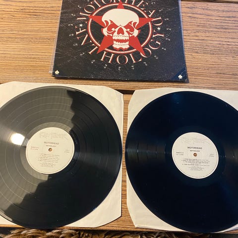 Motörhead LP vinylplader. Sættet omfatter blandt andet albummene "Rock ’n’ Roll" og "Another Perfect Day" på vinyl. Velegnet til samlere af rock og heavy metal samt til afspilning på pladespiller.