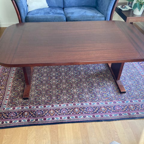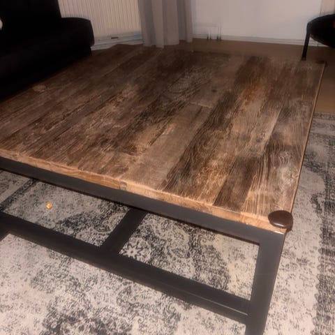 Dejligt sofa bord i fyr træ. Har fået en lille let farvet olie. Som kan slibes af hvis det ikke ønskes. Et meget lige frem sofabord. Man kan lege med. Det er brugs spor