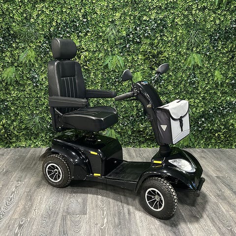 Denne 4-hjulet el-scooter er et solidt og brugervenligt køretøj med komfortsæde. Komfortsædet er udstyret med armlæn og nakkestøtte, så du sidder behageligt på din køretur. Scooteren fås med en bagkurv med plads til diverse bagage eller dagligvarer - kan afmonteres hvis det ønskes.