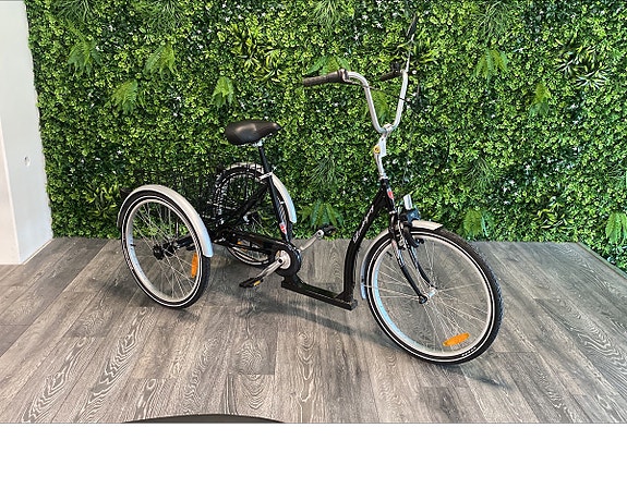 Smart 3-hjulet el-scooter, som er perfekt til besøg, korte ture byen, i butikker eller indkøbscentre. Scooteren er monteret med forkurv, så du har plads til bagage.