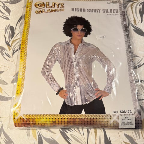 Meget flot jumpsuit str. 140 med 2 “handsker” og diskobælte.