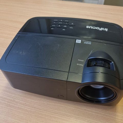 Super fin InFocus IN114xv projektor fra 2022 med mange timer tilbage i lampen. Den har kun kørt 206 timer ud af 6000 timers lampe levetid. Meget høj lysstyrke på 3800 lumens og kontrast på 26.000- Fjernbetjening og strømkabel medfølger.