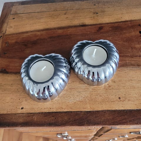 9 cm høje og 7,5 cm brede. Super flotte som fremhæver og pynter på bordet.