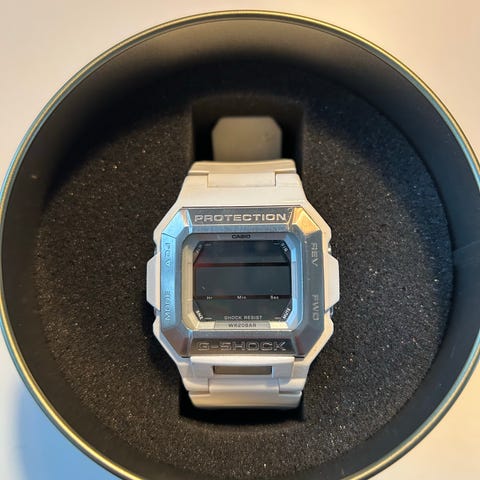 Casio G-Shock armbåndsur i sort. Digitalt urhus med robust beskyttelsesramme og gummirem. Leveres i original G-Shock metaldåse med skumindsats. Uret er designet til at være stød- og vandresistent, egnet til daglig brug og udendørs aktiviteter.