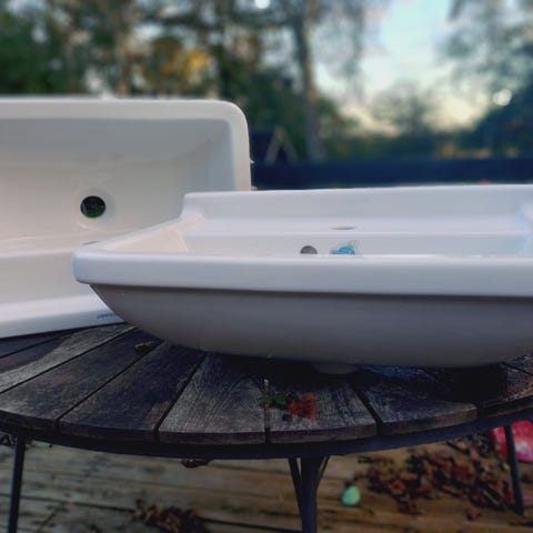 Vasken fremstår som ny - ingen ridser eller skader. Monterinssæt medfølger.