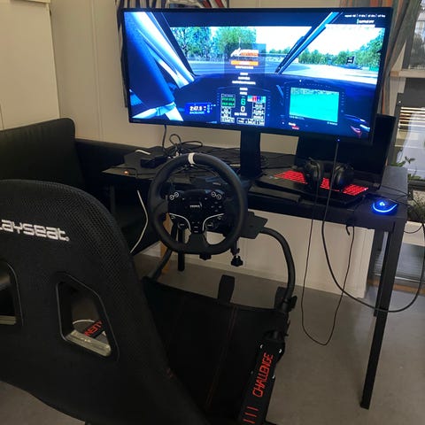 Moza rat, pedaler og bordmontering. Leveret december 2025