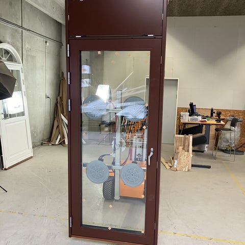 Terrassedør, træ/alu, b: 89 h: 205, Rationel Auraplus 3 lags terrassedør - OBS! Uden karm - med sikkerhedsglas/lås. Med matteret glas, åbner med håndtag i højre side og ud. Sorte alu ude/hvide træ inde, aldrig brugt (købt for 3 år siden - har stået indenfor).