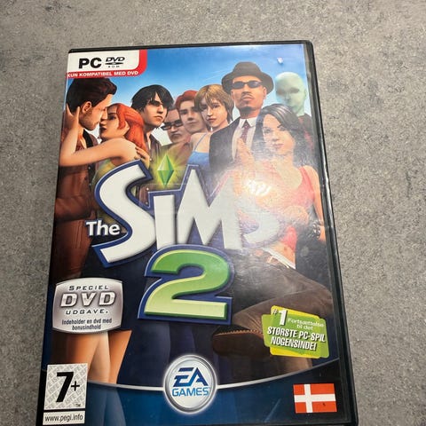 EA Games The Sims 2 PC spil. Spillet leveres på dvd-rom til PC og er et livssimulationsspil, hvor spilleren styrer figurer og deres hverdag. Cover og skiver fremgår af billederne, og spillet er markeret med aldersmærkning 7+. Velegnet til PC med dvd-drev, der opfylder spillets systemkrav.