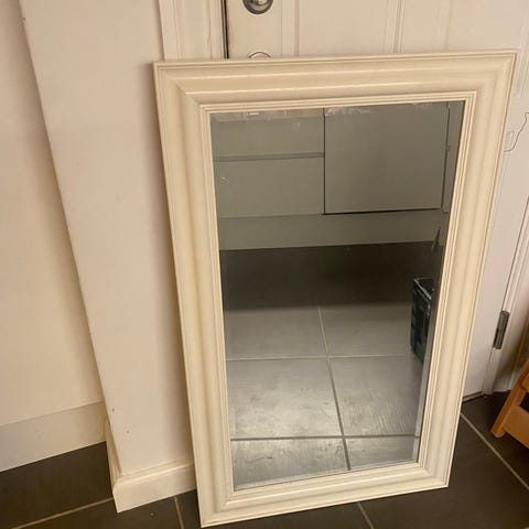Hvidt spejl med kraftig ramme – ca. 100×70 cm