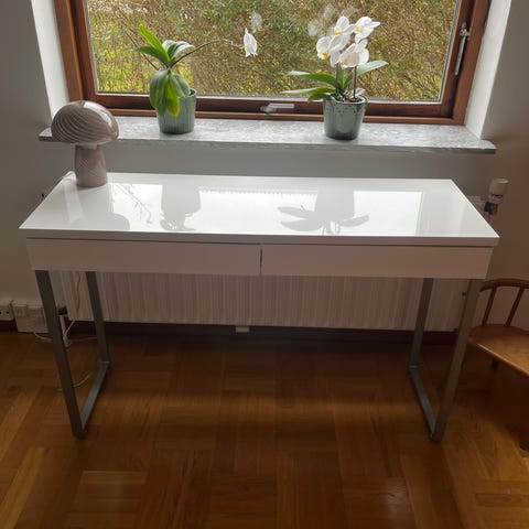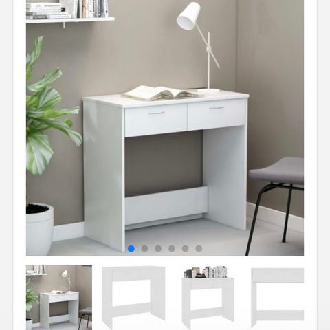 skriveborde 1 hvid og 1 blå bordflade. stålben og praktiske skuffer.