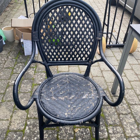 Original kurvestol fra 80’erne. Har stået i et sommerhus, flere hynder følger med. Prisen er pr. Stk. 2 stk. haves