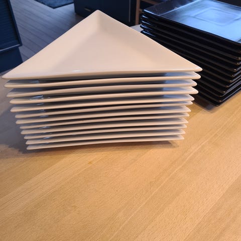 4 stk. firekant stor tallerkner i sort farve porcelæn, fra Aida atelier aroma, ubrugte str. 26 x 26 cm. god kvalitet porcelæn, kan hentes alle 4 stk. for 50 kr.