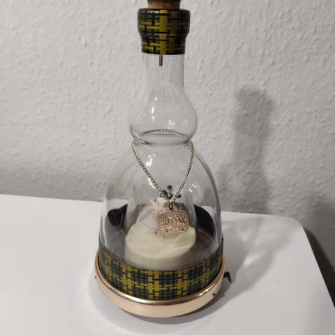 Crystal Head Vodka glasflaske i kranieformet design. Flasken er gennemsigtig og fremstillet i klart glas. Egnet som dekorationsgenstand eller til opbevaring af væske efter aftapning. Tekst med Crystal Head Vodka på soklen af flasken.