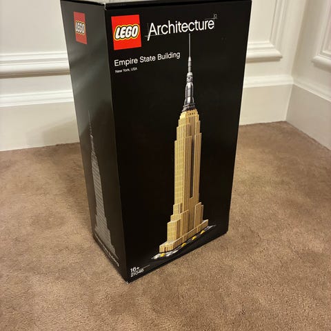 LEGO Architecture byggesæt af Empire State Building. Modellen forestiller den kendte skyskraber med detaljeret facade og tårn og har en højde på 55 cm.