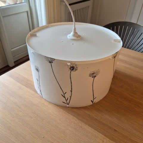 Loftlampe i cylinderform med skærm bestående af klare plastkrystaller ophængt i flere rækker. Lampen har hvid ledning og fatning til montering i loft. Velegnet som belysning i fx stue, soveværelse eller gang, hvor der ønskes et dekorativt lys med reflekser fra de klare elementer. Lampen er 29 cm. høj og dia. 25 cm.