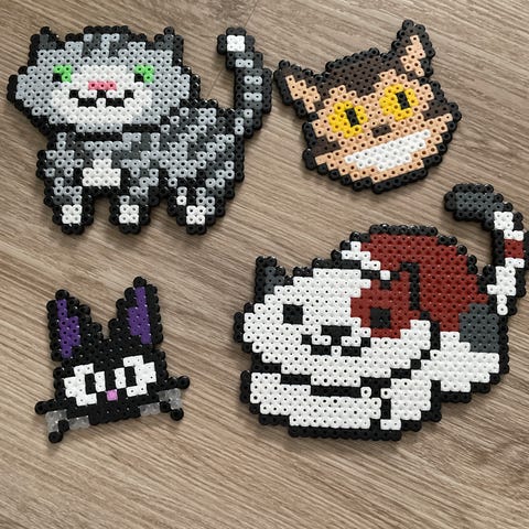 Pokemon perleplader figurer i forskellige motiver og farver. Sættet består af flere kendte Pokemon-figurer lavet som flade perleplader, velegnet som dekoration, leg eller samling. Figurerne er lagt på et trægulv og fremstår i klare, kontrastfyldte farver med pixel-inspireret udseende.