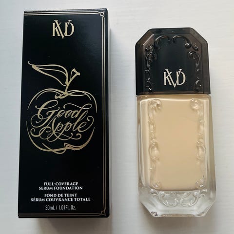 KVD Good Apple og Everlasting makeup med flere produkter til læber og ansigt. Sættet indeholder blandt andet Good Apple foundation balm samt Everlasting læbeprodukter i nuancerne Queen of Poisons og Moonflower.