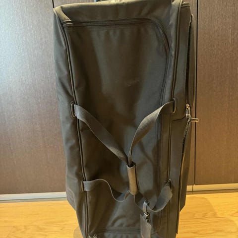 TUMI trolley rejsekuffer og computertaske i sort nylon og læder. Sættet består af en trolleytaske/kuffert med udtrækkeligt håndtag og hjul samt en mindre skuldertaske/computertaske, der kan fastgøres oven på trolleyen. Begge tasker har flere lynlåsrum og lommer. Egnet til weekendrejser eller som arbejds- og computertaske til daglig transport. Nypris ca. kr. 6000