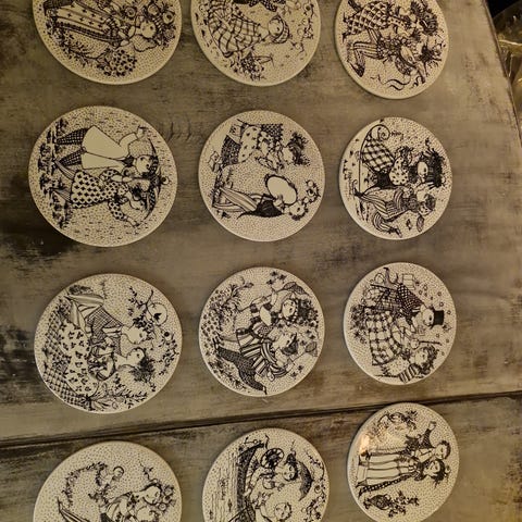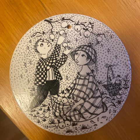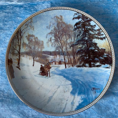 Porcelænsplade Vinter i Nordisk Kunst Landsby i vinterdragt rund hvid