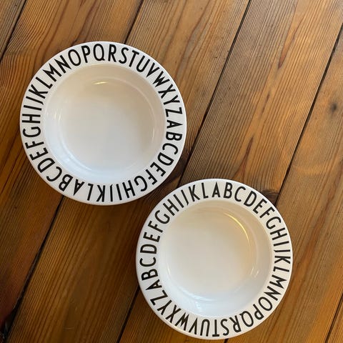 Design Letters, To stk tredelte trekantede Design Letters, Arne Jacobsen tallerkner. En enkelt mindre tredelt tallerken.