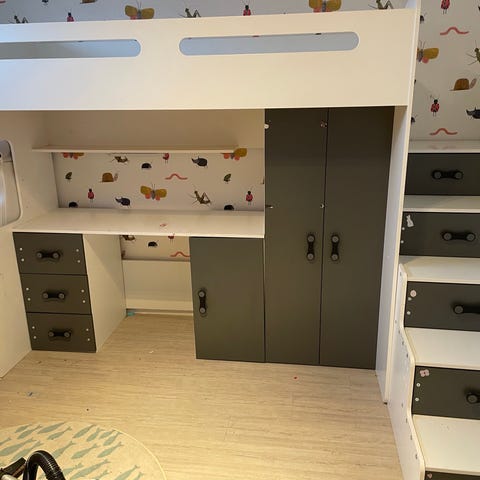IKEA højseng hvid med skabe i lystræ