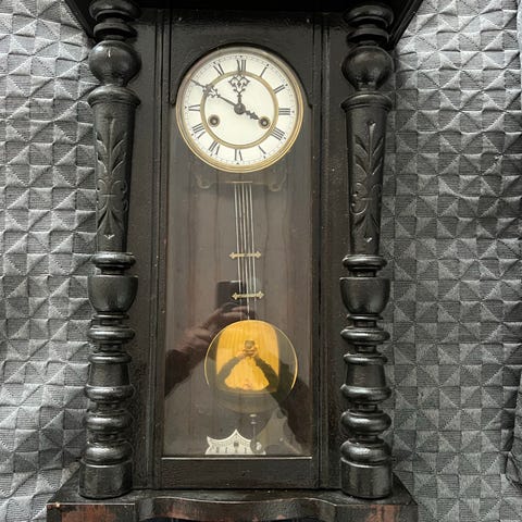 Vægur med pendul i mørkt træ