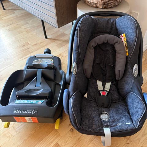 Der medfølger også et spædbarns indlæg til stolen. Den er købt i Babysam og brugt til et barn.
