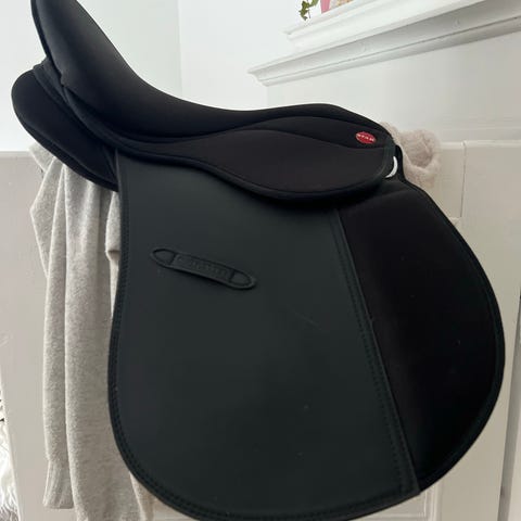 Sadlen er en close-contact springsadel og har velcro-knæstøtter (og lægstøtter), som kan flyttes og placeres efter rytterens ønske, så støtten nemt kan tilpasses individuelt.