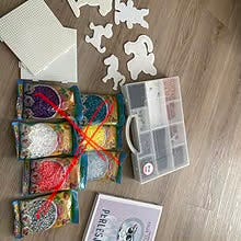 Perler beads figurer i forskellige farver. Motiverne omfatter blandt andet dyr, fantasifigurer og kageform. Figurerne er lavet af plastperler og kan bruges som pynt, dekoration på vægge eller møbler, eller som små gaver og legetøj til børn under opsyn. Velegnet til kreativ leg og hobbyprojekter.