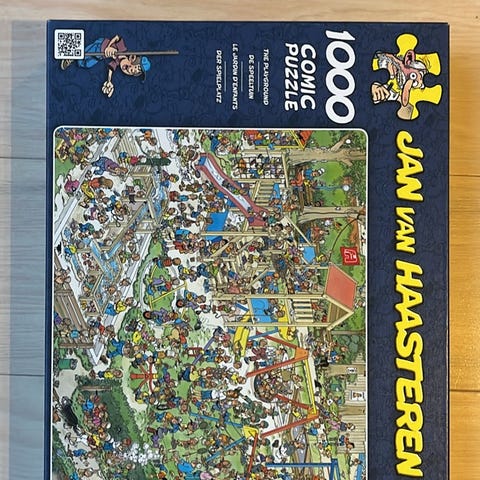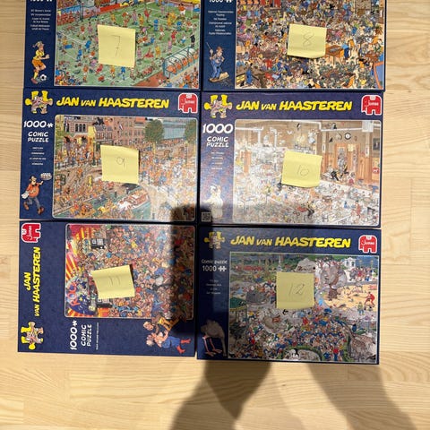 Jan van Haasteren puslespil samling med motiver i tegneseriestil.