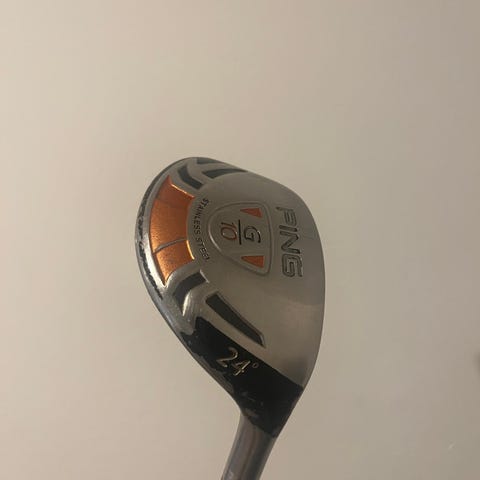 Ping G10 hybridkølle med 28° loft. Skaft er et Ping TFC 129 H grafitskaft i soft regular. Standard længde. Velegnet som hybrid/jern-erstatning til slag fra fairway eller rough.