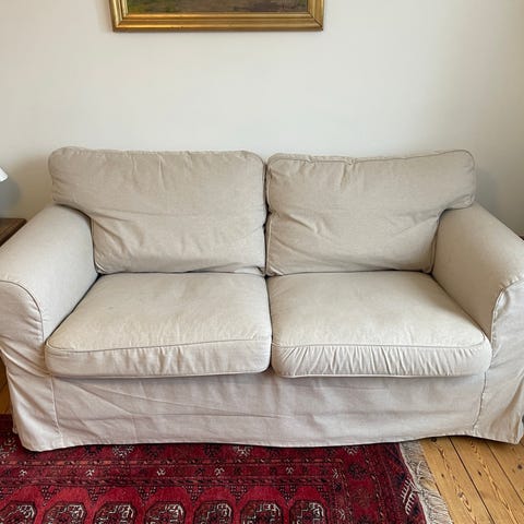 En IKEA sofa med et par år på bagen (de sælger den ikke længere), men som fungerer 100% Smuk mørkegrønt betræk som kan tages af og vaskes.