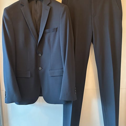 Sættet består af blazer, habitbukser og matchende vest. Blazeren har mønstret foer med flaskemotiv og knaplukning foran samt forlommer. Vesten har knaplukning og to forlommer. Bukserne er klassiske habitbukser med pressefolder. Velegnet som konfirmation jakkesæt til formelle lejligheder og festbrug.