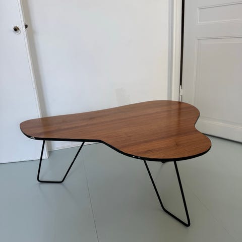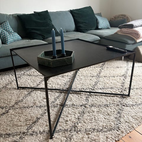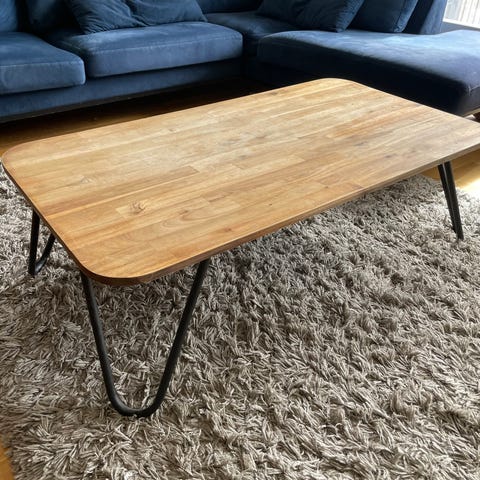 Massivt sofabord i træ med stålben – minimalistisk