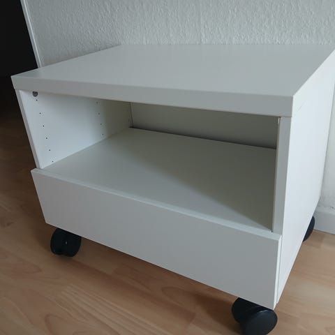 Lille hvidt TV-bord på hjul fra IKEA, Model Lack. Rigtig fin stand. Højde 51,5 cm, længde 90 cm, dybde 26 cm.