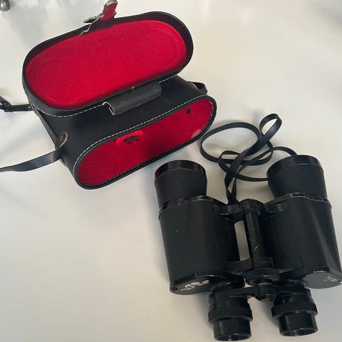 Charmerende ældre kikkert med tilhørende taske.