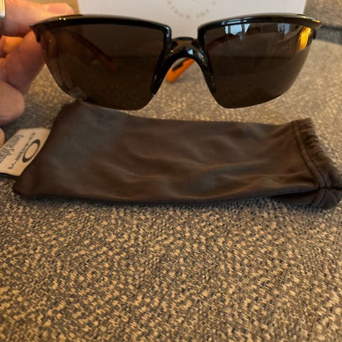 Oakley solbriller til unisex i blå ramme med mørke glas. Brillen leveres med en sort opbevaringspose med Oakley-logo. Velegnet som sports- eller hverdagssolbrille til både mænd og kvinder.