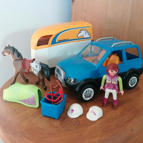 Playmobil - #9376 - Porsche bil med hestetrailer og rytterfigurer