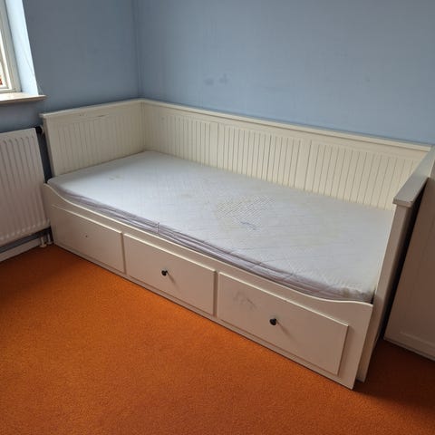 Boksmadrassen købt i maj 2024, IKEA Valevåg til nypris 1100,- Desværre er der pletter på madrassen, men brugsmæssigt er den som ny.