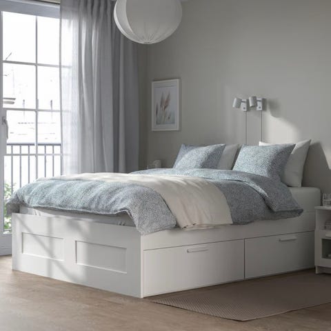 IKEA seng med opbevaringsskuffer. Sengen fungerer som enkeltseng til hverdag og kan bruges som sofa i et værelse eller opholdsrum. Man kan trække sengestellet ud til dobbeltseng, hvis man har to madrasser. Under sengen er der indbyggede opbevaringsskuffer, som giver ekstra plads til fx sengetøj eller tøj. Nypris 1450,-
