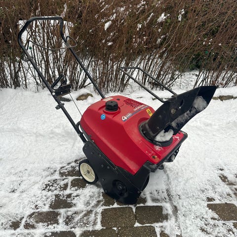 Den benzindreven to-trins sneslynge er designet til effektiv snerydning af større områder som indkørsler og fortove.